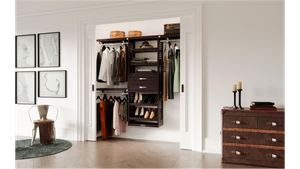John Louis Home has announced their solid wood closet organizer range with compact, cut-to-fit systems for guest rooms and apartments, offering modular configurations up to 10 feet wide with adjustable shelving, dual hanging rods, and installation requiring no permanent modifications.